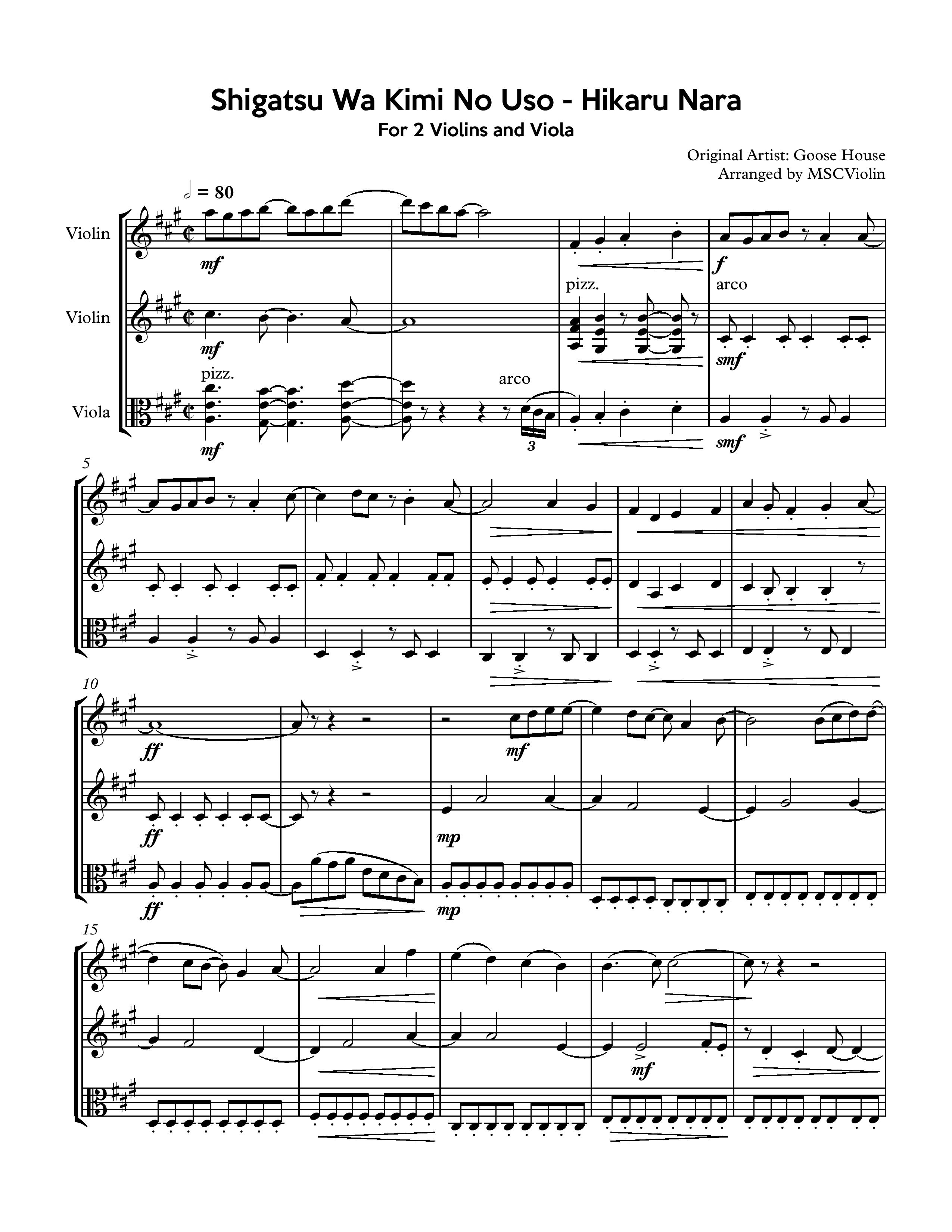 Hikaru Nara For 2 Violins And Viola Shigatsu Wa Kimi No