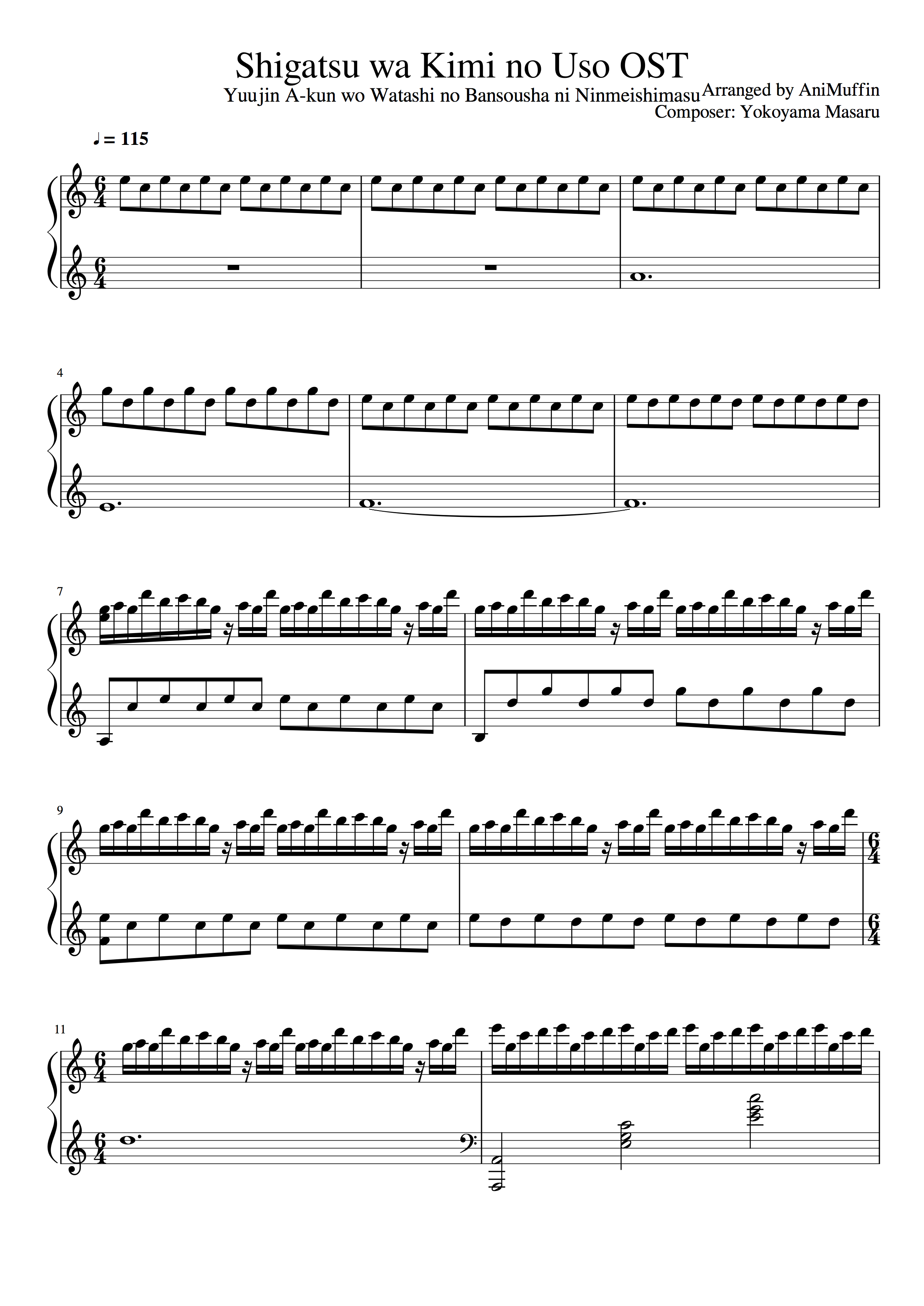 Shigatsu Wa Kimi No Uso Ost Quot Again Quot Piano Sheets Midi